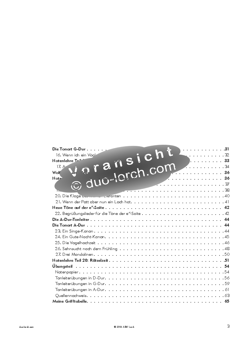 - Tonleitern in D-Dur, G-Dur und A-Dur
